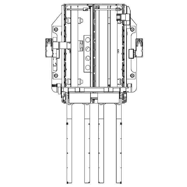 本物品は、ガラス基板、半導体基板等の基板を下方から保持しながら搬出入するための基板搬出入機であり、板格納容器または基板処理装置から基板を保持して取り出し、その基板を他の基板格納容器または他の基板処理装置に引き渡すことができる。 本物品は、長尺状の2枚の板材が連結されて成るフォークを左右一対備え、搬出入対象の基板は、該左右一対のフォーク(計4枚の板材)の上に載置される。 左右一対のフォークは、電動モータから動力を受けて基板搬出入機本体に対して板材の延設方向に移動可能となっており、それにより基板の搬出入を行う。斜視図、正面図、背面図、平面図、底面図、左側面図および右側面図は、基板搬出入機本体からフォークが出された状態を示し、参考斜視図および参考平面図は、フォークが収納された状態を示す。 また、基板搬出入機本体の正面側上方には、上述のようにして搬出入される基板を上方から撮像するためのカメラが左右一対取り付けられており、該基板を検査可能となっている。