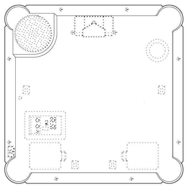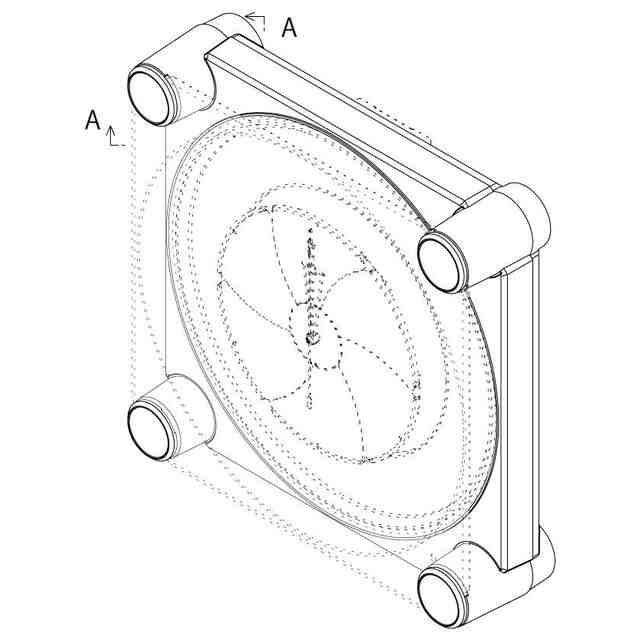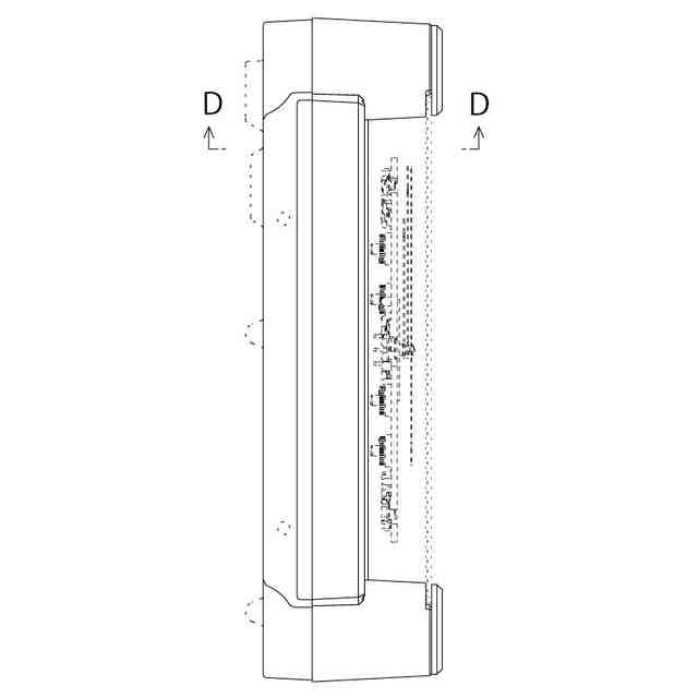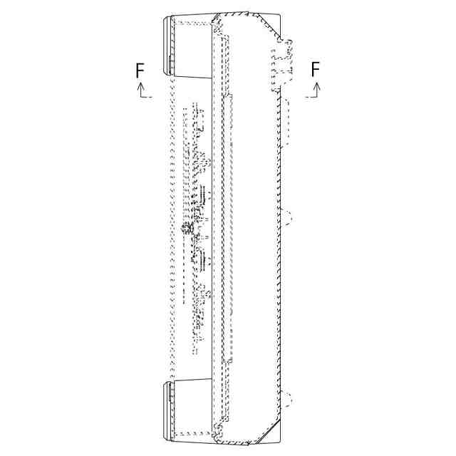 実線で表した部分が、意匠登録を受けようとする部分である。透明部を示す参考縮小斜視図において薄墨を付した部分は透明である。