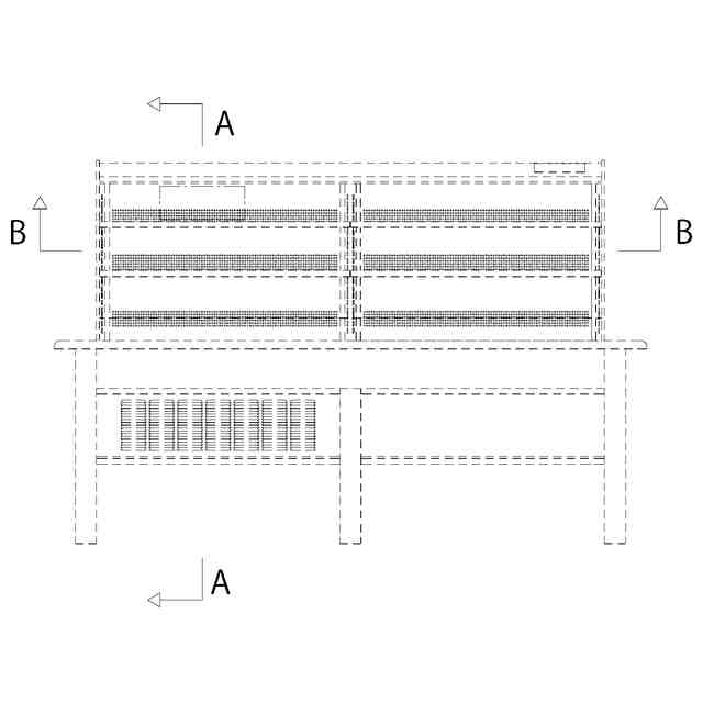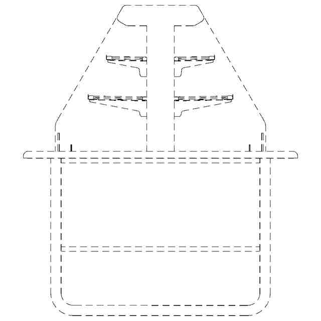 左側面図は右側面図と対称にあらわれるため省略する。実線で示した部分が、部分意匠として意匠登録を受けようとする部分である。一点鎖線は部分意匠として意匠登録を受けようとする部分とその他の部分との境界のみを示す線であって、その内側について意匠登録を受けようとするものである。