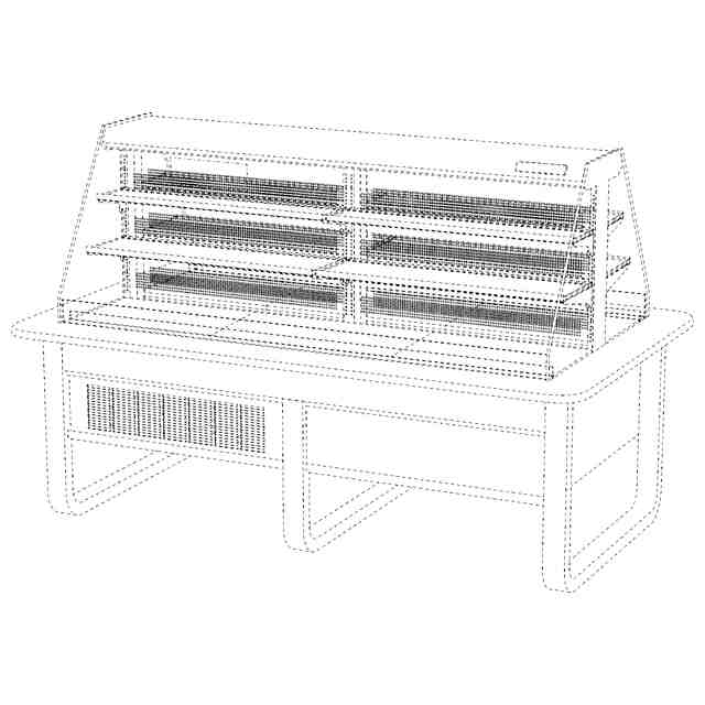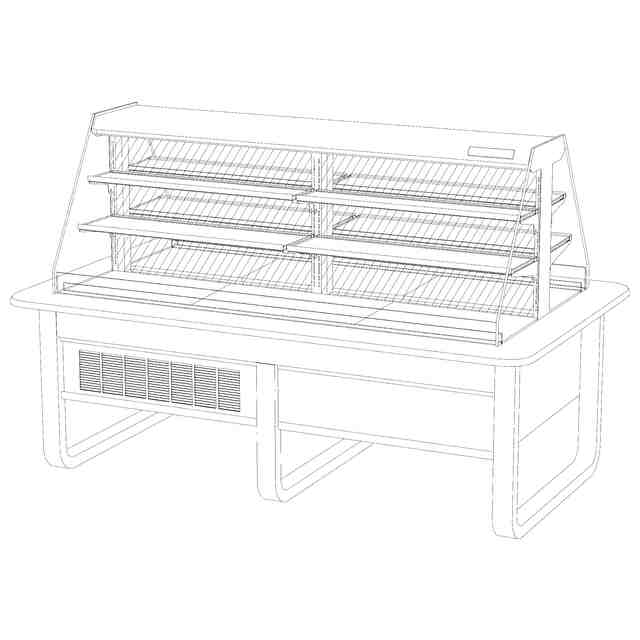 本物品は、前後両面に商品を陳列する棚を備え、前後の棚を仕切る背面板を備えたものである。背面板は透明部を示す参考図の様に透明であり、冷蔵ショーケースの冷気を棚方向に吹き出す為の穴を複数備えたものである。