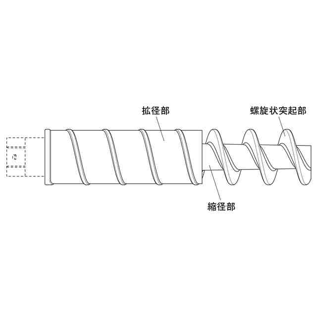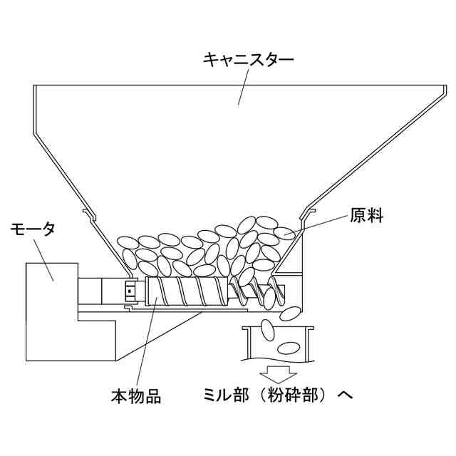 本物品は、飲料供給機内で部品として用いられるスクリューである。使用に際しては、本物品を別途モータに連結し、本物品を中心軸回りに回転させて、飲料供給機のキャニスター内にある原料(例えばコーヒー豆)をミル部(粉砕部)へと送り出す。本物品は周回りに「拡径部」と「縮径部」を有しているため、原料がキャニスター内で偏ることなく 「螺旋状突起部」を介してミル部(粉砕部)へ供給できるものである。