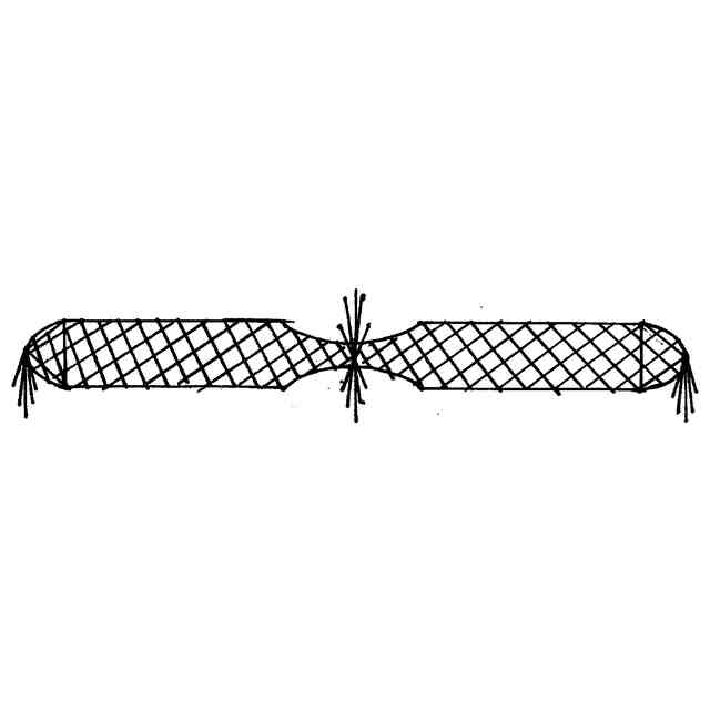 本物品は、座部および背部あてに用いるクッションである。本体の中心部および外側輪郭の両角には、充填物の片寄り防止および装飾を兼ねた、綴じ糸止め飾り房を設けている。