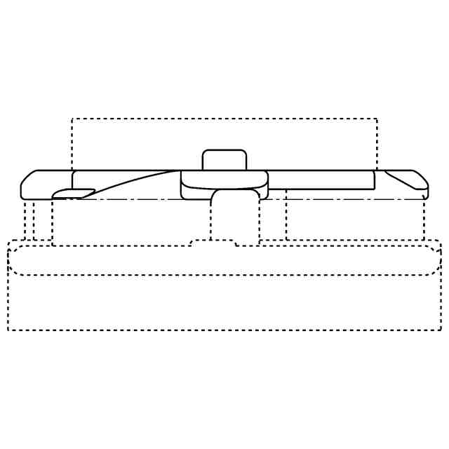 実線で表した部分が意匠登録を受けようとする部分である。一点鎖線は意匠登録を受けようとする部分とその他の部分との境界のみを示す線である。 右側面図は、左側面図と同一に表れるため省略する。背面図は、正面図と同一に表れるため省略する。斜視図に表された細線は、立体表面の形状を特定するためのものである。