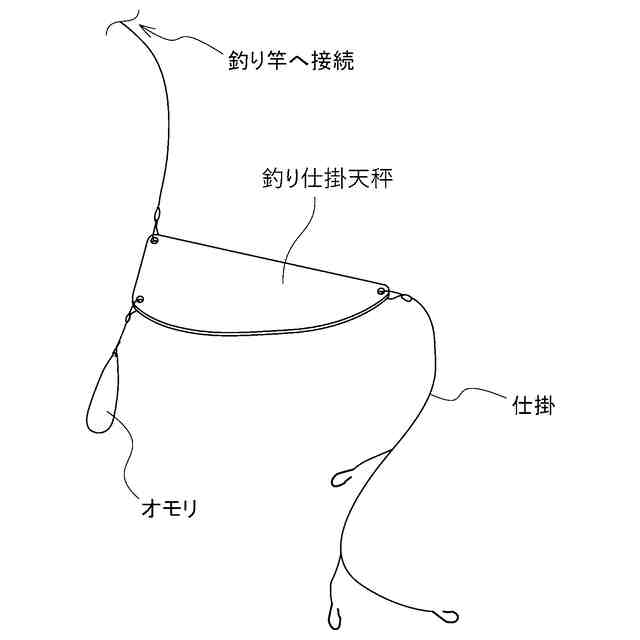 本物品は、海釣りで使用する釣り仕掛天秤であり、「天秤」や「釣り天秤」とも呼ばれる物品である。「使用参考図」に示すように、本物品には釣り竿に接続した釣り糸の端部が固定され、かつ、それぞれオモリ及び仕掛とも接続されている。オモリ及び仕掛が接続された状態の本物品を海中に落とし、釣り竿や釣り糸を動かすことで本物品が動かされ、本物品に接続した仕掛が動き、獲物である魚類を引き寄せる仕組みである。主として海底のカレイ等の魚類を釣り上げるために使用する。
