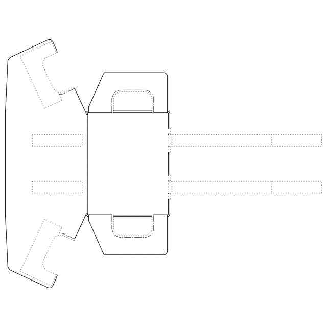 実線で表した部分が、意匠登録を受けようとする部分である。一点鎖線は、意匠登録を受けようとする部分とその他の部分との境界のみを示す線である。底面図は平面図と対称にあらわれる。