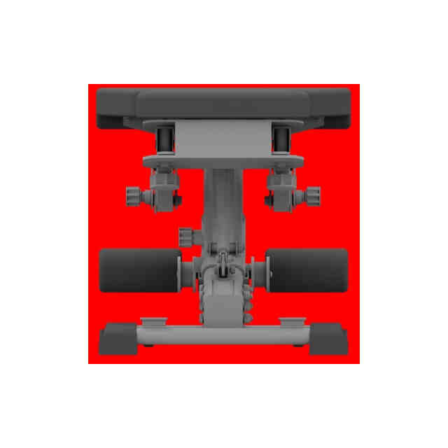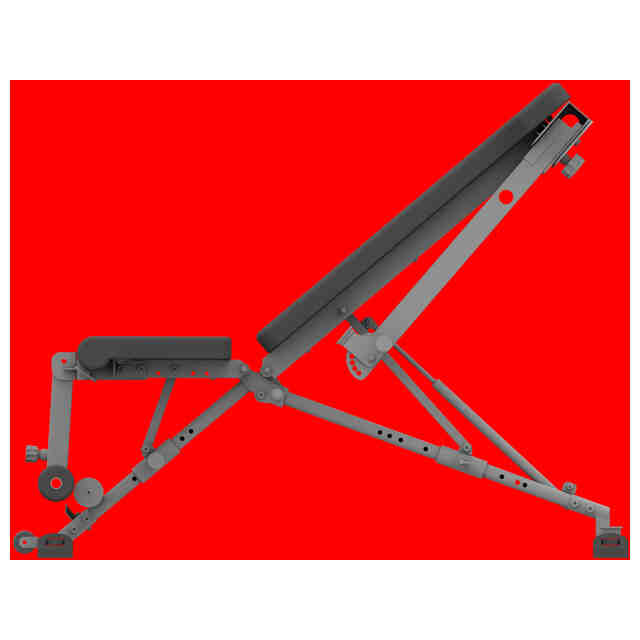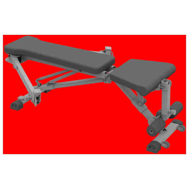 本物品は、使用状態を示す参考図1乃至5にあらわしたように、取付部に筋力鍛錬器具を取付けることにより、様々な筋力トレーニングを行うことができるトレーニング器具である。本物品は、背部の角度が変化した状態を示す各図にあらわしたように、背部の角度を変えることができる。本物品は、背部アームを拡開した状態を示す各図に表したように、背部アームを拡開することができる。本物品は、座部アームの角度が変化した状態を示す各図にあらわしたように、座部アームの角度を変えることができる。本物品は、折り畳んだ状態を示す各図に表したように、折り畳むことができる。