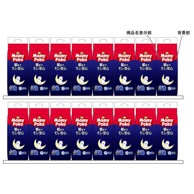 本物品は、主として、使い捨ておむつを包装するために用いられる包装用袋である。本物品は、「使用状態を示す参考図」に示すように、陳列した状態で一続きの壁のように見える視覚的効果を有する。