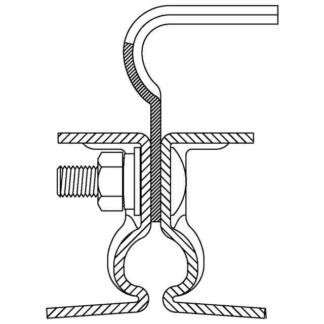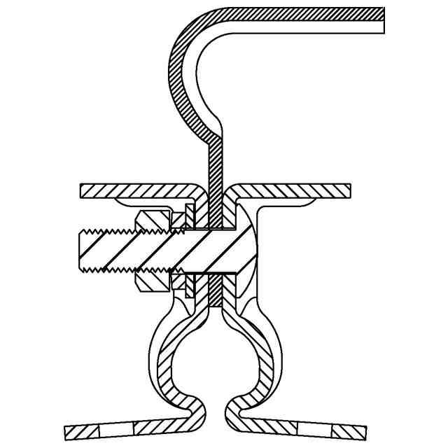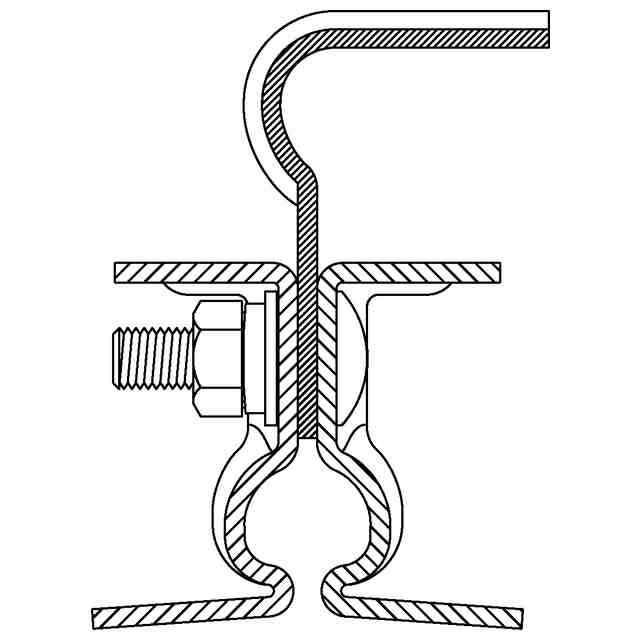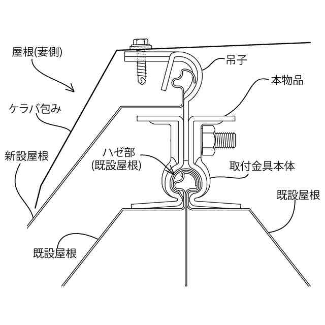 本願意匠に係る物品は、折板屋根の改修に使用される屋根板取付金具である。ハゼ折板屋根の改修工法の一としてカバー工法があるが、当該カバー工法において、本物品は既設の折板屋根とその上に設ける新設の折板屋根を接続するために用いられる。本物品の取付金具本体は、既設折板屋根のハゼ部を挟み込んで強固に固定する形状を備え、加えて、施工手間を少なくするために極力高さが低くされていることで特徴のある断面形状を有する。