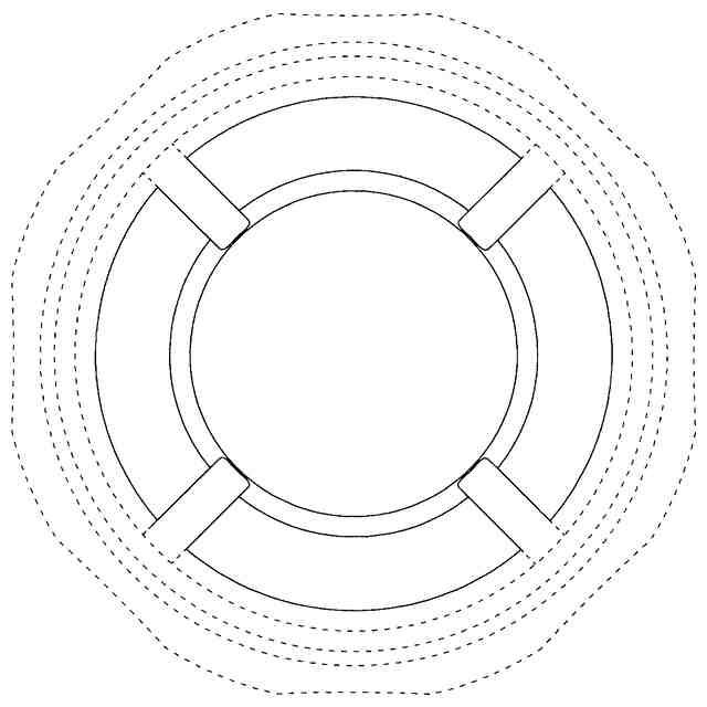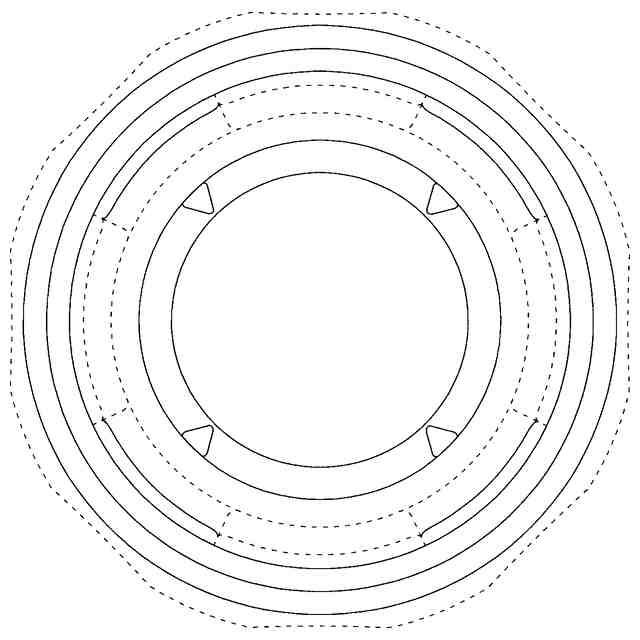 実線であらわした部分が、意匠登録を受けようとする部分である。一点鎖線は意匠登録を受けようとする部分とその他の部分の境界のみを示す線である。斜視図、端面図及び断面図を含めて意匠登録を受けようとする部分を特定している。背面図は正面図と対称に、底面図は平面図と同一にあらわれる。