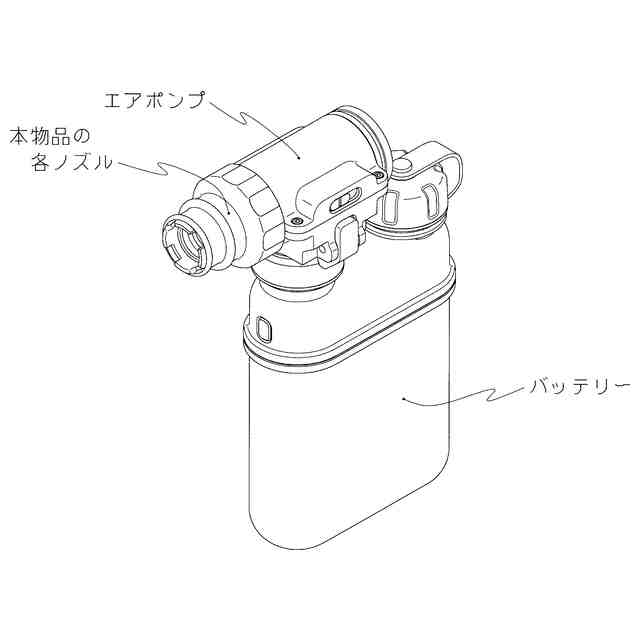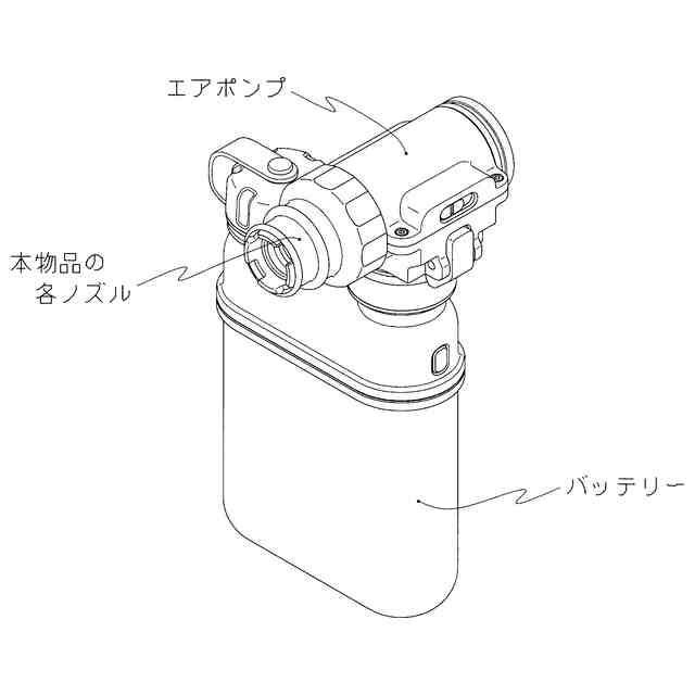 この意匠に係る物品は、接続対象物の異なる複数種の各ノズルが分離可能に連結されたものであり、使用状態を示す各参考図に示すように、接続対象物に対応するノズルをエアポンプに取り付けて、例えば、エアーマットに空気を充填または排出する際に用いられるものである。