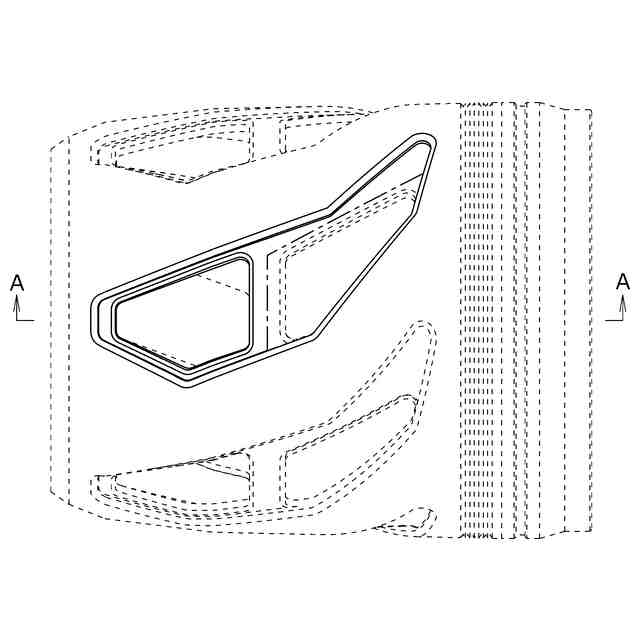 実線で表した部分が意匠登録を受けようとする部分であり、端面図を含めて登録を受けようとする部分を特定している。一点鎖線は、意匠登録を受けようとする部分とその他の部分との境界のみを示す線である。