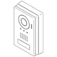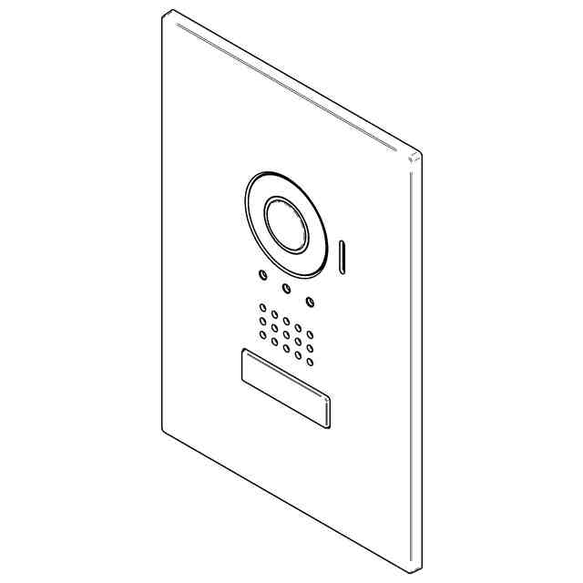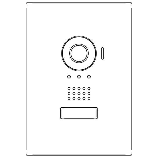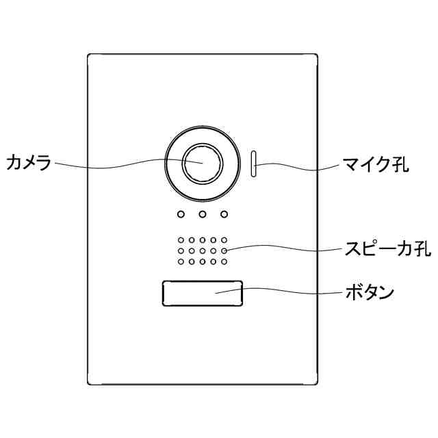 本物品は、玄関子機として使用されるインターホンである。本物品は、壁に埋め込まれ各種機器等が収納されるボックス部分と、ボックス部分の正面に設けられ、壁から露出するパネル部分とから成る。パネル部分には、各部の名称を示す参考正面図に示すように、正面上部から下部にかけて、カメラと、スピーカ孔と、ボタンとが縦に並んで設けられると共に、カメラの右側にマイク孔が設けられている。