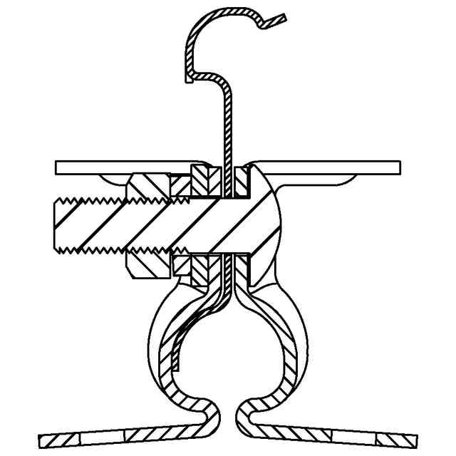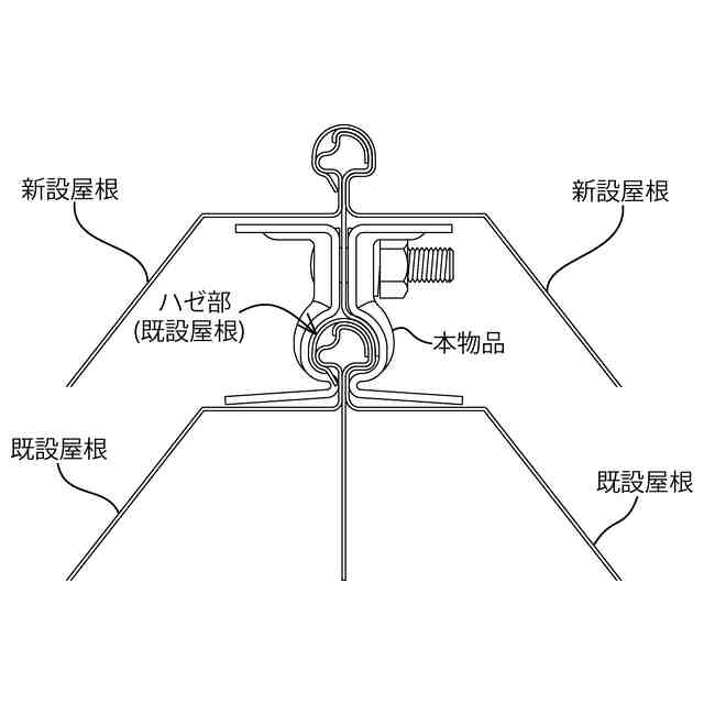 本願意匠に係る物品は、折板屋根の改修に使用される屋根板取付金具である。ハゼ折板屋根の改修工法の一としてカバー工法があるが、当該カバー工法において、本物品は既設の折板屋根とその上に設ける新設の折板屋根を接続するために用いられる。本物品の取付金具本体は、既設折板屋根のハゼ部を挟み込んで強固に固定する形状を備え、加えて、施工手間を少なくするために極力高さが低くされていることで特徴のある断面形状を有する。