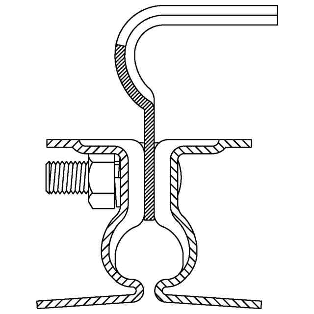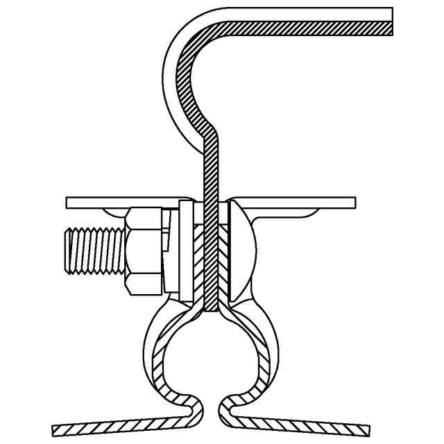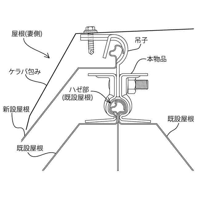 本願意匠に係る物品は、折板屋根の改修に使用される屋根板取付金具である。ハゼ折板屋根の改修工法の一としてカバー工法があるが、当該カバー工法において、本物品は既設の折板屋根とその上に設ける新設の折板屋根を接続するために用いられる。本物品の取付金具本体は、既設折板屋根のハゼ部を挟み込んで強固に固定する形状を備え、加えて、施工手間を少なくするために極力高さが低くされていることで特徴のある断面形状を有する。