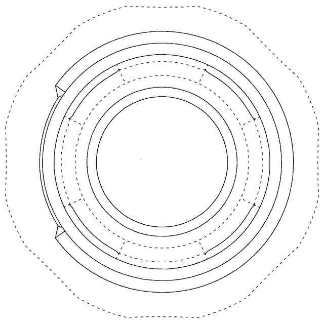実線であらわした部分が、意匠登録を受けようとする部分である。一点鎖線は意匠登録を受けようとする部分とその他の部分の境界のみを示す線である。斜視図、端面図及び断面図を含めて意匠登録を受けようとする部分を特定している。底面図は平面図と対称にあらわれる。