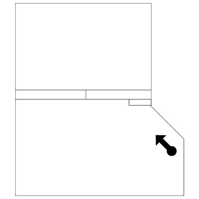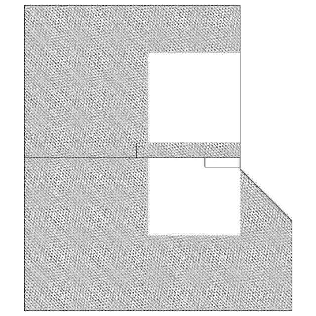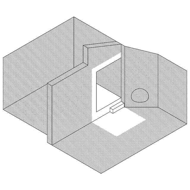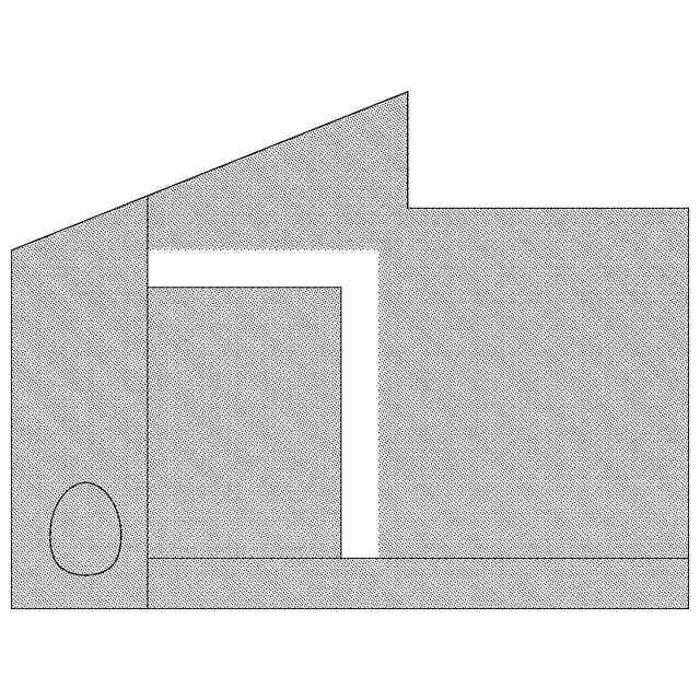 薄墨を施した部分を除く部分が、意匠登録を受けようとする部分である。斜視図及び断面図を含めて意匠登録を受けようとする部分を特定している。この意匠登録出願の意匠は建築物内の位置を特定しない部屋の内部であり、内部の形状等を表すために、斜視図では、天井及び手前側の壁を除いた状態で、正面図、背面図、右側面図及び左側面図では、天井及び向かい合う面の壁を除いた状態で、平面図では、天井を除いた状態であらわしている。参考平面図においてあらわした矢印の位置と向きは、使用状態を示す参考図と、視点の位置と向きにそれぞれ対応したものである。