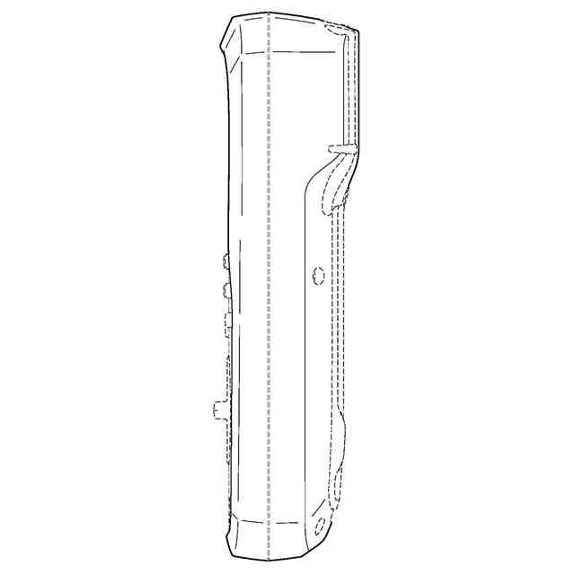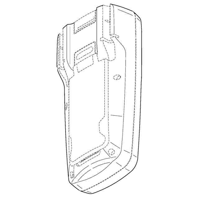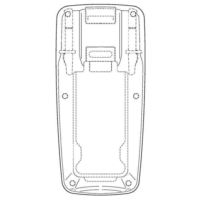 実線で表れた部分が意匠登録を受けようとする部分である。各図に表れた断続的な細線は、立体表面の形状を特定するためのものである。