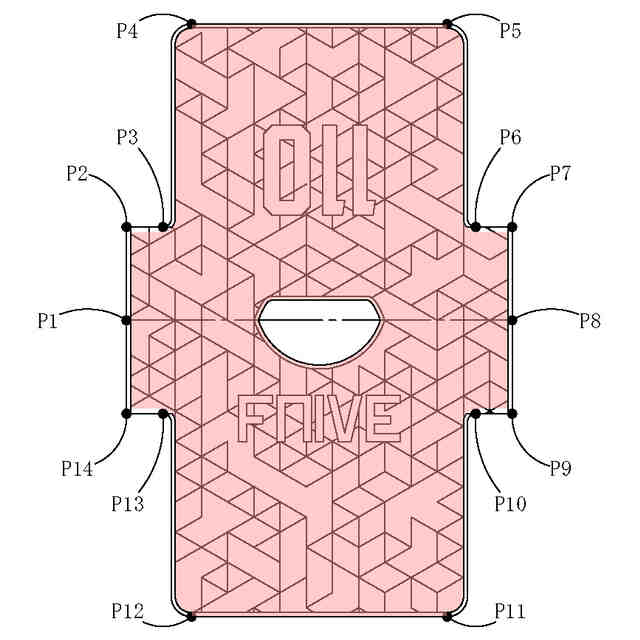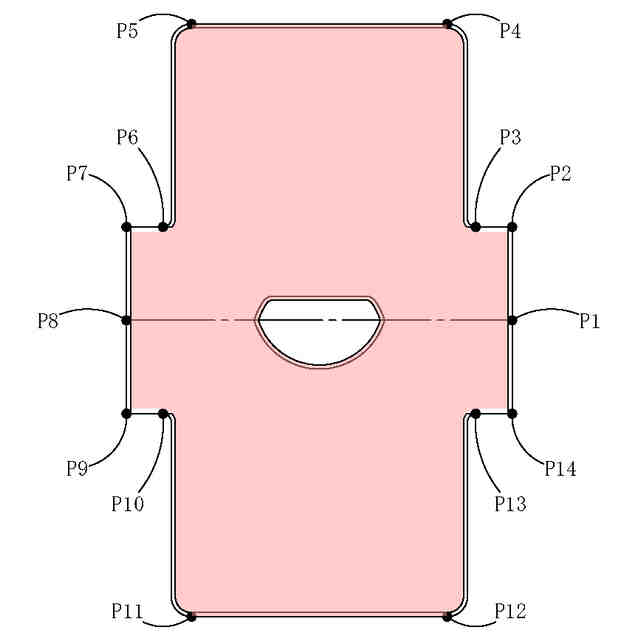 薄紅色で着色した部分以外の部分(ポンチョの左側縁及び右側縁に沿った箇所(「表側から見た参考展開図」及び「裏側から見た参考展開図」における点P4,P3,P2,P1,P14,P13,P12をこの順で結ぶ曲線、及び、点P5,P6,P7,P8,P9,P10,P11をこの順で結ぶ曲線に沿った箇所)が、部分意匠として意匠登録を受けようとする部分である。
