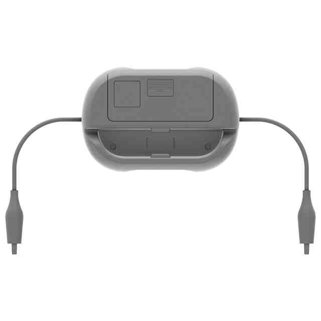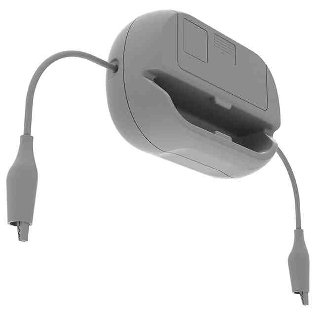 本物品は、電流、電圧、抵抗などを測定するデジタルマルチメータであり、さらに、音や電圧の波形を表示するオシロスコープとしての機能も有する。本物品の背面には背面図及び端面図に示されているような凹部が形成されており、参考図で示すように、本物品の両端に備えられたミノムシクリップ付きケーブルをそこへ収納・固定することができる。