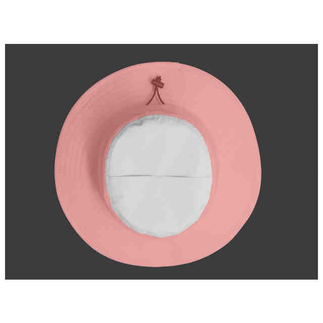 薄赤色で着色した部分以外の部分(帽子のトップクラウン)が、意匠登録を受けようとする部分であり、薄赤色で着色した部分は、意匠登録を受けようとする部分ではない。