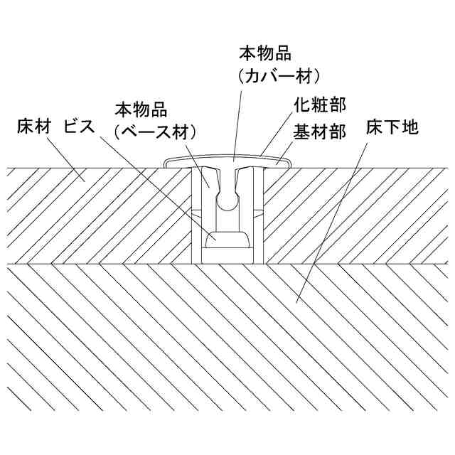 本物品は建物の床材と床材の間に収まる見切材に関し、合成樹脂の射出成形で形成されるベース材と合成樹脂の共押出成形で形成される化粧部と基材部を有するカバー材からなる。本物品のベース材を床材と床材の間に配置した後、端部をビスで固定し、カバー材をベース材に嵌合させて仕上げる。本物品のベース材は、床の隙間の長さに応じて複数個連続配置したり、切断したりして用いる。