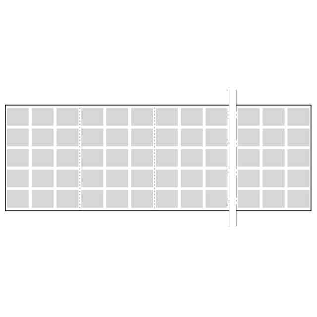 中間省略をした部分の長さは、約20mである。破線は折り目を表す。左側面図は右側面図と同一につき、左側面図を省略する。裏面図は平面図と同一につき、裏面図を省略する。