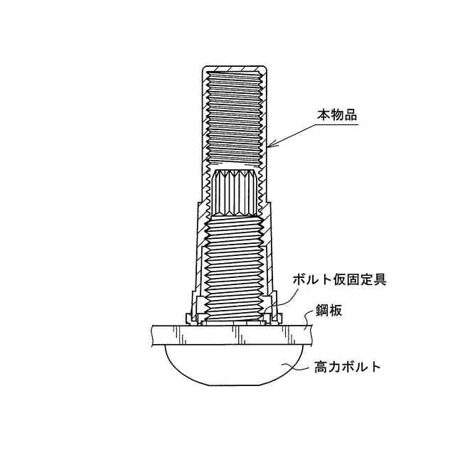 本物品は、鋼板に仮固定した高力ボルトの雄ねじに取り付けて鋼板から突出した軸部分を被覆保護し、添接板と接合するまでの期間防錆等をはかるものである。