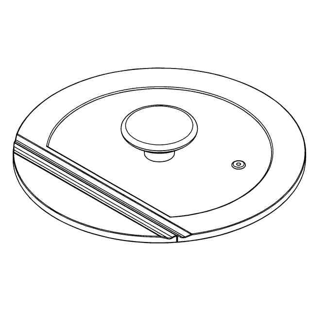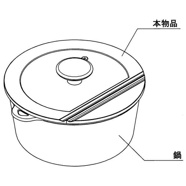 本物品は、例えばフライパンや鍋などの加熱調理器に使用する蓋である。本物品は、〔蓋の縁が少し開いた状態の右側面図〕に示すように、縁の一部の円弧状部分が中心部分に対して上方に開くことが可能である。本物品のつまみ部分には、鉄などの磁石が吸着できる材料によって構成されたツール吸着部が形成されてなり、ツール吸着部は上面が略平坦に形成され、磁石を備えたおたまなどの調理用ツールを、その磁力によって一時的に吸着しておくことができる。