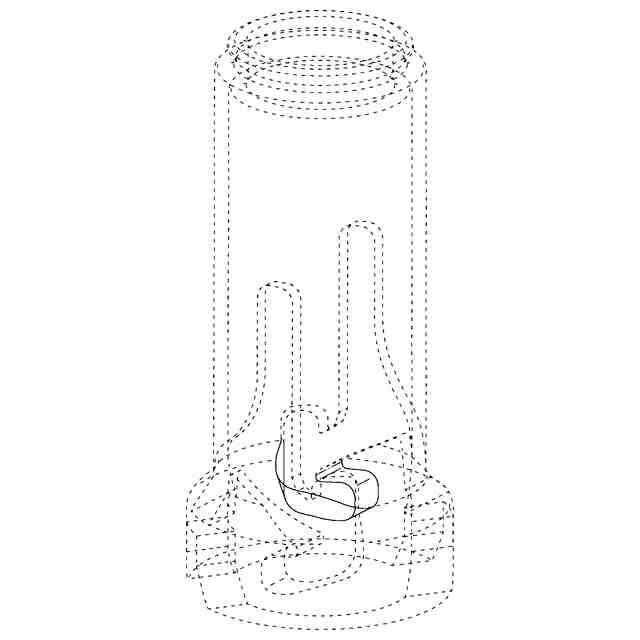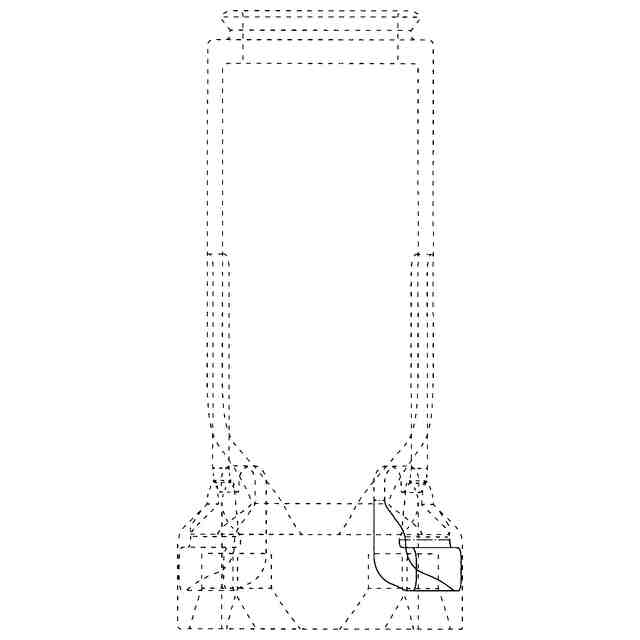 実線であらわした部分が、意匠登録を受けようとする部分である。一点鎖線は意匠登録を受けようとする部分とその他の部分の境界のみを示す線である。斜視図、端面図及び断面図を含めて意匠登録を受けようとする部分を特定している。本物品は、全体が透明である。