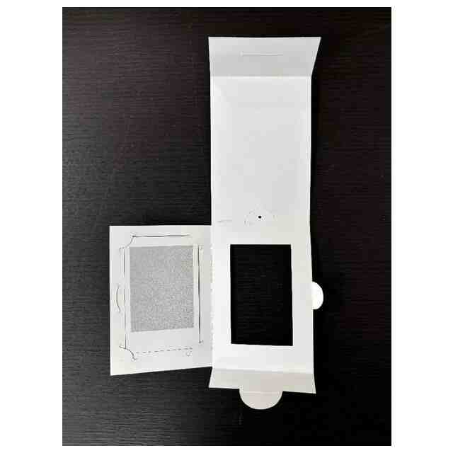 本物品は、「使用前の状態を示す参考図」に示される平板状の部品を変形させ組み立て、組み立てた写真フレームの背面に付いている壁掛けフック部分を展開することで、写真立て用スタンドのほか、壁掛けフック付き写真立て用スタンドにもなるという2つの機能を有する。なお、本物品は、主に、写真用フレームとして用いられるが、適当な厚さのものであれば様々な鑑賞用の品をはさみ込める。
