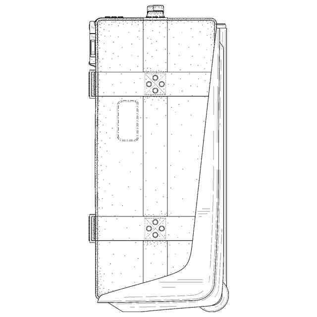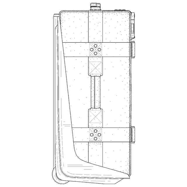 実線で表された部分が、部分意匠として意匠登録を受けようとする部分である。一転鎖線で示された部分は、部分意匠として意匠登録を受けようとする部分を構成しない。各部の表面部全面に表された点および平行状細線は、いずれも立体表面の形状を特定するためのものである。