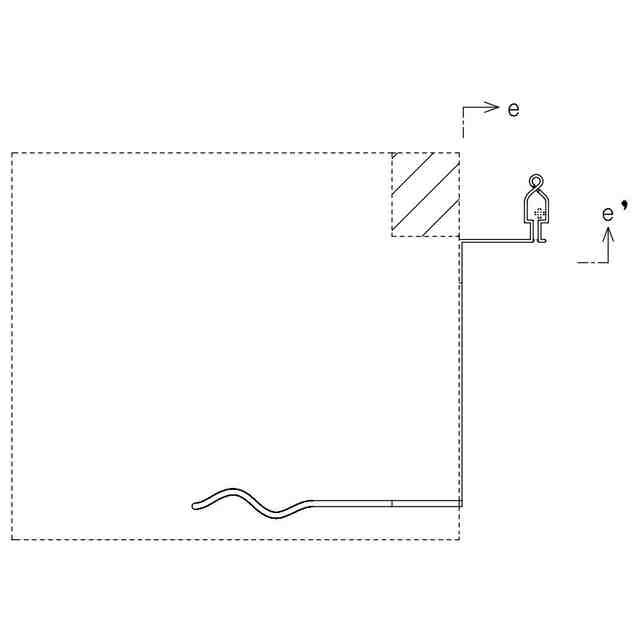 意匠登録を受けようとする部分を実線で、それ以外の部分を破線で表した。透明部を示す参考e-e’部分拡大図において、薄墨を施した部分は透明である。