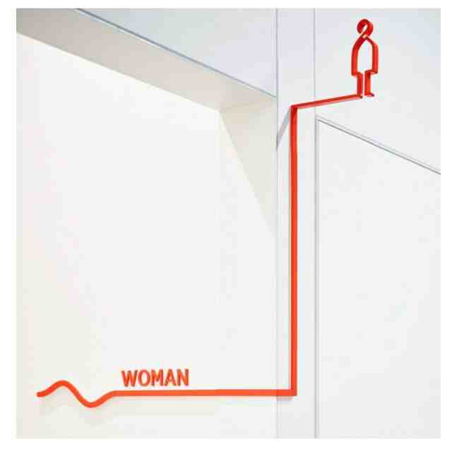 この内装は、オフィス共有スペースの内装であって、意匠登録を受けようとする部分は化粧室の案内標識である。