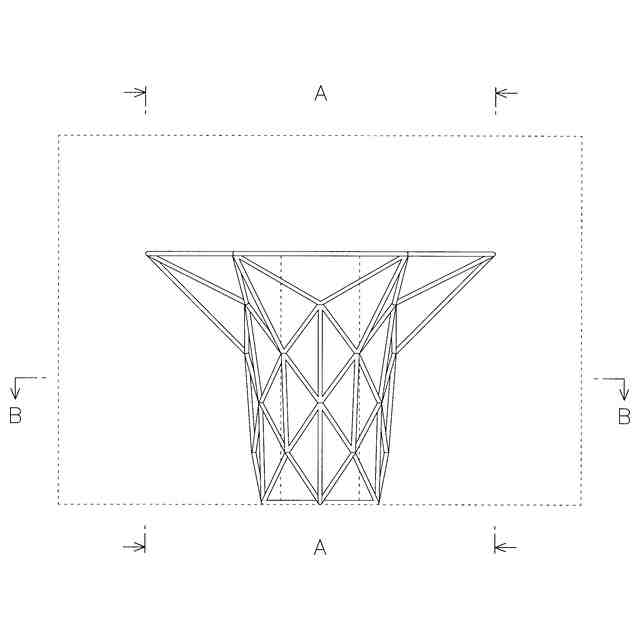 実線であらわした部分が、意匠登録を受けようとする部分である。端面図及び断面図を含めて意匠登録を受けようとする部分を特定している。この意匠登録出願の意匠は建築物内の位置を特定しない部屋の内部であり、内部の形状等を表すために、天井、正面側、右側面側、左側面側の各壁を除いた状態であらわしている。左側面図は右側面図と対称にあらわれる。