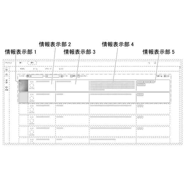 本画像は、組織内における学習情報を表示するための画像である。例えば企業や学校などの組織において、人材育成の学習手法として用いられるリフレクション(行動における内省)に関連する各種情報を、ユーザー(学習参加者等)との対話形式によるフレームワークに沿って「情報表示部1」から「情報表示部5」までに表示することにより、各ユーザーの前記各種情報を一つの画面で見易く表示し、効率的な学習をアシストする画像である。各部の名称を「各部の名称を示す参考図」に表わす。