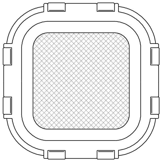 背面図、右側面図及び左側面図は正面図と同一に表れるため省略する。透明部分を示す参考正面図及び透明部分を示す参考平面図において、斜め格子模様を施した部分は透明である。