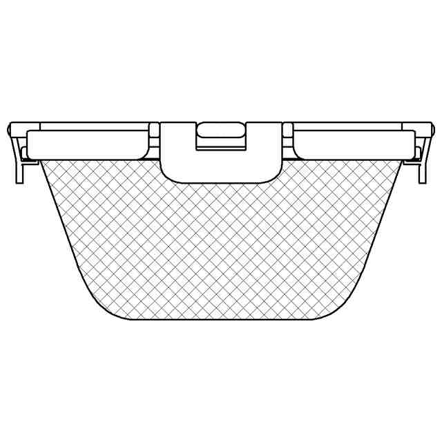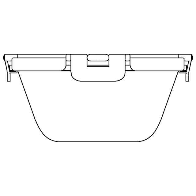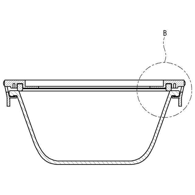 背面図、右側面図及び左側面図は正面図と同一に表れるため省略する。透明部分を示す参考正面図及び透明部分を示す参考平面図において、斜め格子模様を施した部分は透明である。