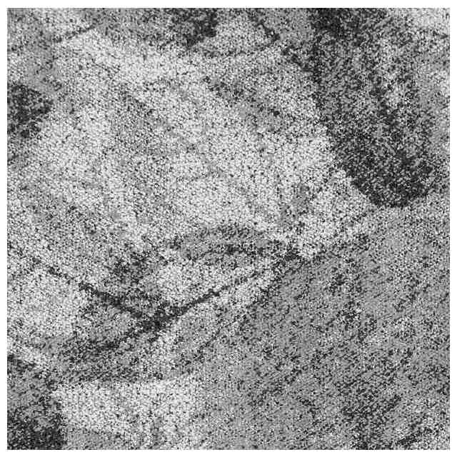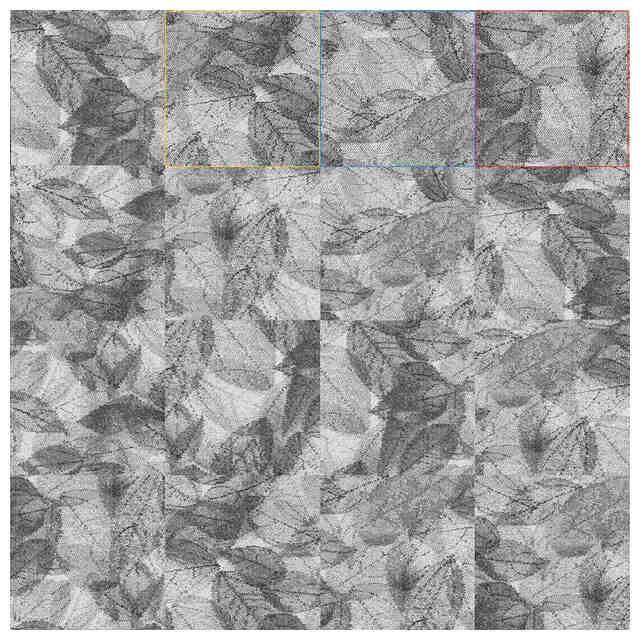 赤色で塗った部分以外の部分が、部分意匠として意匠登録をうけようとする部分である。参考図は、本タイルカーペットがどのように使用されるのかを示した図であり、青色枠に挟まれた部分において本物品が用いられている様を示している。