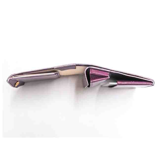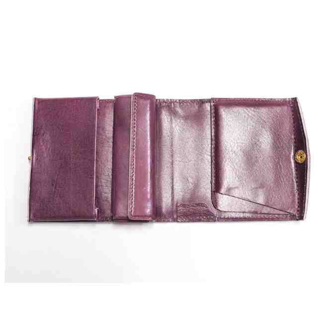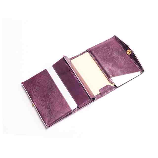 底面にバネホックで留められた蓋を開いた際に、上部から、カードケースが配置され、札や領収書を仕分ける革の仕切りパーツが右側に配置している。小銭収納部分は、内側に折りたたみのマチが付くことで、小銭が取り出しやすいよう、大きく開く構造になっている。小銭収納部下のカード収納部分は、一ポケット最大6枚収納可能であるが、カードの枚数に応じて、厚みが変動する。また、取り出す際にはカード部分が前に出る構造になっている。