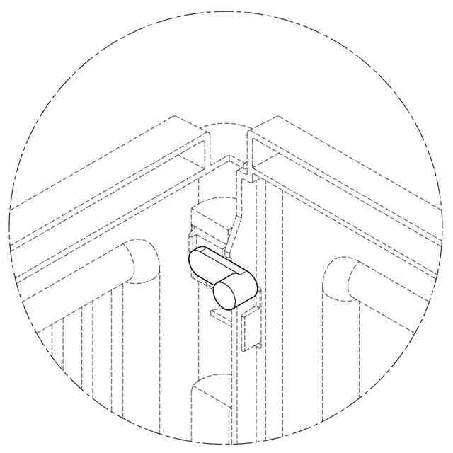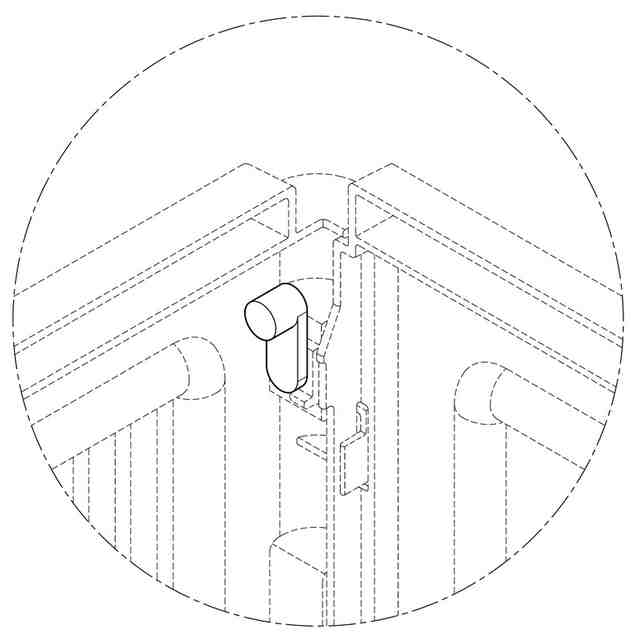 使用状態を示す参考図1から3は本願意匠が使用された状態を表す図面であり、破線で示した部分は、本願の権利を主張する部分ではない。使用状態を示す参考図1では、本物品が収納ボックスで使用されている状態を示しており、本願意匠を使用した部分を取り出し立体的に表示することで、本意匠が使用されている場所を強調表示している。使用状態を示す参考図2は、参考図1を部分的に拡大表示したものである。使用状態を示す参考図3は、参考図2が作動している状態を表示している。使用状態を示す参考図1の二点鎖線は図面の切り口を示すものであり、権利範囲を示すものではない。使用状態を示す参考図2と参考図3の一点鎖線は、拡大した範囲を示すものであり、権利範囲を示すものではない。
