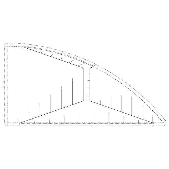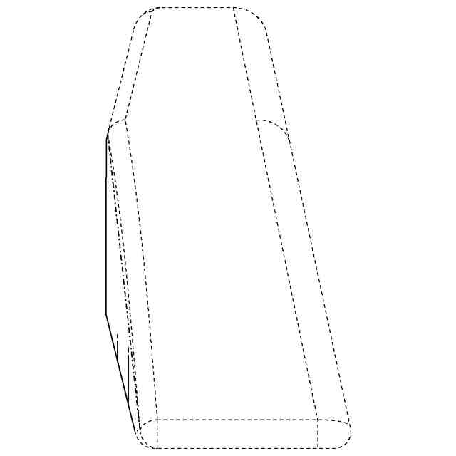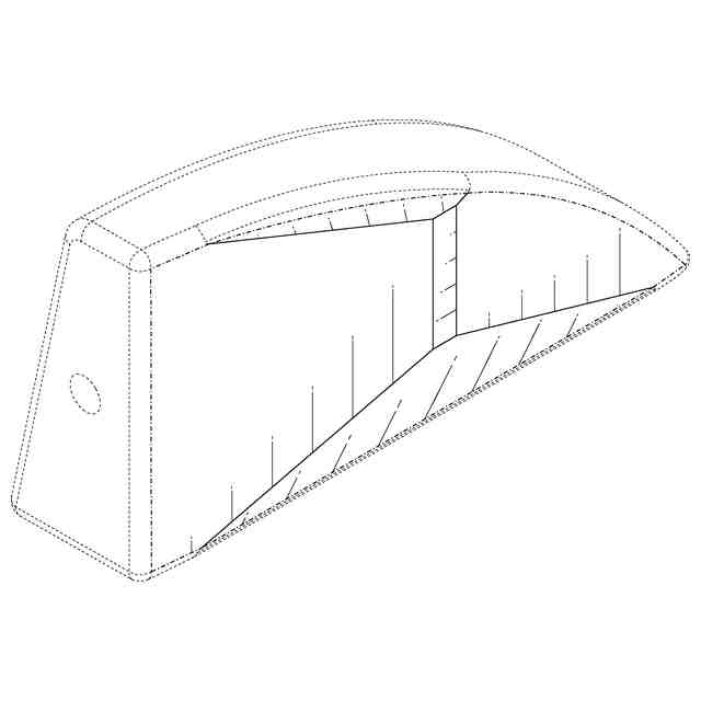 実線で表された部分が意匠登録を受けようとする部分である。一点鎖線は意匠登録を受けようとする部分とそれ以外の部分との境界のみを示す線である。実線で表された部分における途切れ状細線は立体表面の形状を特定するためのものである。