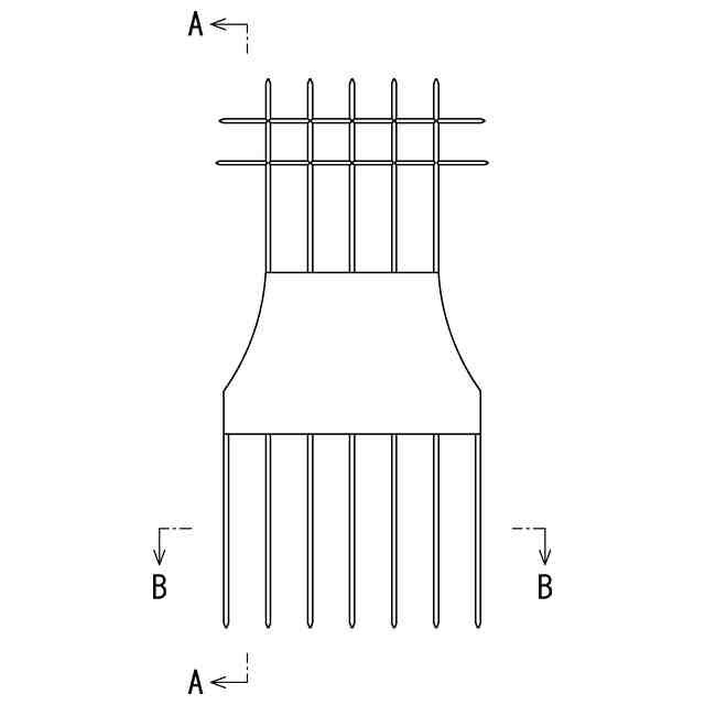 本物品は、容器に収納された豆腐をサイの目に切断するための豆腐カッターである。本物品は、使用状態を示す参考図に示すように、例えば、豆腐が収納された容器の封止フィルムを剥がし、容器の側壁と豆腐の隙間に櫛歯状の切断刃を容器の内底面に接触するまで差し込み、本物品を立てた状態のまま対向した側壁まで移動させることで豆腐を切断する。その後、櫛歯状の切断刃で切断した方向と直交する方向について、櫛歯状の切断刃と反対側の格子状の切断刃により、櫛歯状の切断刃による切断と同様の態様で本物品を移動させることで豆腐を切断する。これにより、容器内の豆腐がサイの目に切断される。