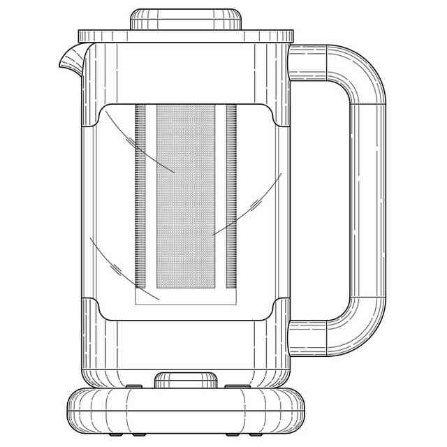The design shows a double-walled electric water kettle. 1.1)Perspective; 1.2)Front; 1.3)Back; 1.4)Top; 1.5)Bottom; 1.6)Left; 1.7)Right