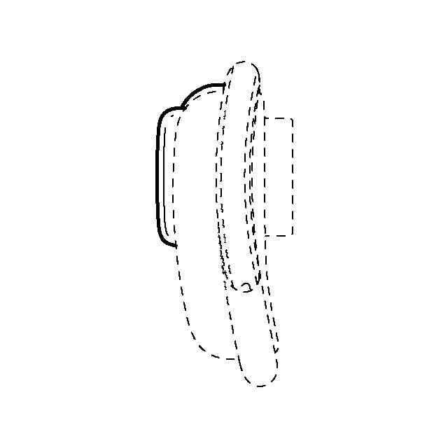 実線で表された部分が、意匠登録を受けようとする部分である。図面に表されている破切れた細線は、模様を表す線ではなく、いずれも立体表面の形状を表す線である。波状の線で分断された部分は、中間省略を示す。