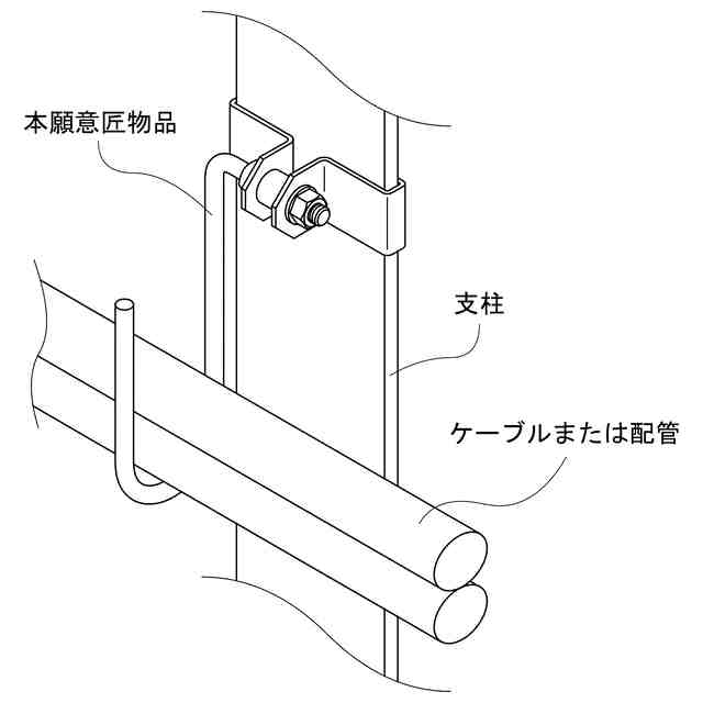 本願意匠に係る物品は、例えば、「使用状態を示す参考図」に示すように、支柱等に取り付けて配管・配線するために用いられる支持具である。