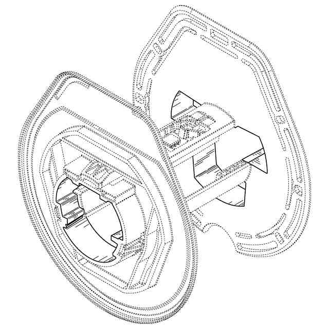 実線で表された部分が、意匠登録を受けようとする部分である。図面に表されている破切れた細線及び破切れた平行状細線は、模様を表す線ではなく、いずれも立体表面の形状を表す線である。