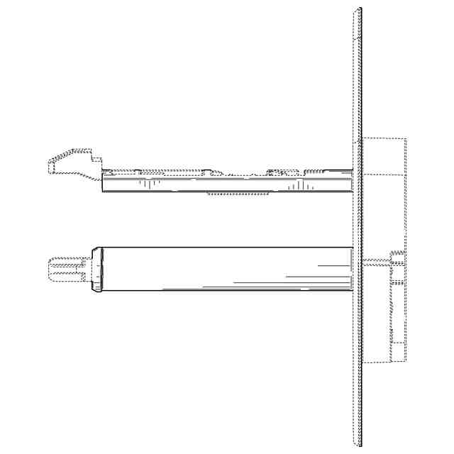 実線で表された部分が、意匠登録を受けようとする部分である。図面に表されている破切れた細線及び破切れた平行状細線は、模様を表す線ではなく、いずれも立体表面の形状を表す線である。