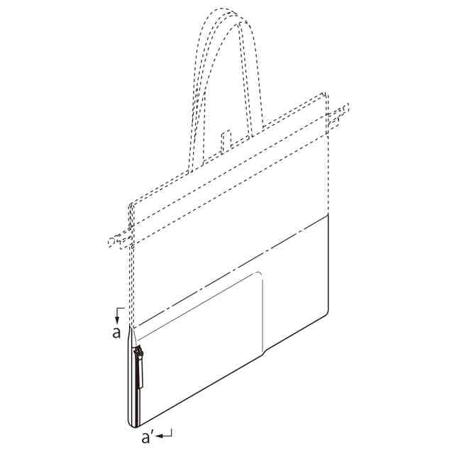 本物品に係るかばんは、本体下部に、本体外側から出し入れ可能なポケットを設けている。当該ポケットの内側はポリエステルマイクロファイバー生地で、外側は撥水加工をすることで、折りたたみ傘やペットボトル飲料等の濡れたものを収納しても当該ポケットの外側まで水が漏れない構成となっている。