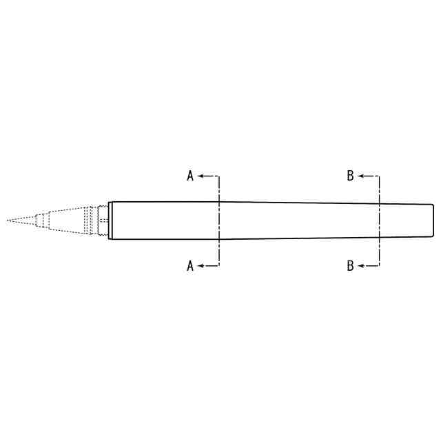 本物品は、胴軸から尻軸にかけて先細り形状とすることで使用時にペン先側に低重心となるように構成すると共に、胴軸の断面形状を指先で持ちやすいように円形としながら尻軸にかけて断面形状を四角形とすることで指間にフィットするように構成することで、使用時に軸がぶれにくい形状としたアイライナーである。