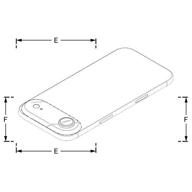 実線で表された部分が、意匠登録を受けようとする部分である。一点鎖線は、意匠登録を受けようとする部分とその他の部分との境界のみを示す線である。平面及び背面側斜視図、背面図、及び、E-E、F-F部分拡大図に表されている傾斜平行状細線を施した部分は透明である。また、平面及び背面側斜視図、背面図、及び、E-E、F-F部分拡大図に表されている傾斜平行状細線は、いずれも模様を表す線ではなく立体表面の形状を示す線である。図面に表されている破切れた細線は、模様を表す線ではなく、いずれも立体表面の形状を表す線である。
